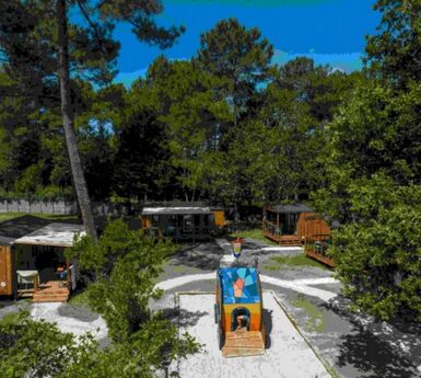 The Médoc Bleu campsite is located in Carcans. It is 1.5 km from the town center, 31 km from Pauillac train station, and 50 km from Mérignac airport. Learn more