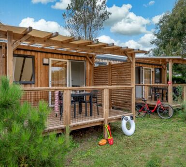 Located in Carcans, on the outskirts of Bordeaux, the Médoc Bleu campsite offers a relaxing getaway. In the heart of the Médoc region, nestled between vineyards and sandy beaches, this campsite welcomes you for a rejuvenating family vacation. Enjoy a preserved natural setting and a friendly atmosphere for unforgettable moments by the Atlantic Ocean.
