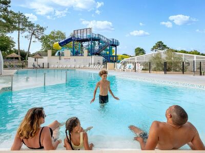 The pool complex on the Le Boudigau campsite welcomes you for some fun and enjoyment. The little ones will love their water play island: slides and paddling pool (ideal for 3 to 6 year-olds).
