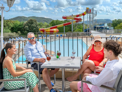 The aquatic area, with its large outdoor pool, pool, and waterslide, does not have a Spacebowl for the enjoyment of children and adults. The outdoor pool is heated depending on weather conditions. The slides are accessible from the campsite.
